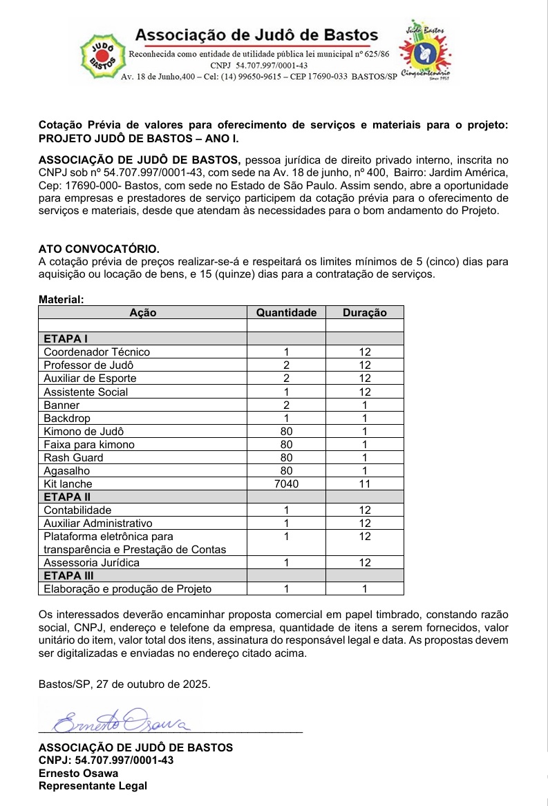 Associacão de Judo de Bastos - Telefone: (14) 3478-1946